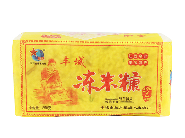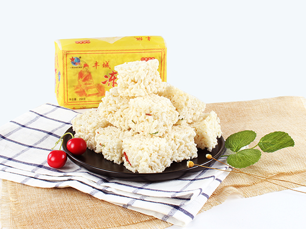 豐城市杜市星球凍米糖廠,是豐城食品生產(chǎn)中的地方傳統(tǒng)名產(chǎn)品。相傳已有兩百多年的生產(chǎn)歷史,以“江南小切,而出名。每年中秋一過(guò),農(nóng)村家家戶戶把糯米飯涼干,炒成爆花米,用米糖拌粘,切成塊塊,待客解茶。這種糕點(diǎn)叫做“炒米糖”、“米花糖塊”。更講究者,用糯米飯做成凍米“干飯”,再用清茶油煎泡“干飯”,使“干飯,變成爆花米,再用飴糖粘結(jié),冷卻后用薄刀切成小塊,前后經(jīng)過(guò)半成...